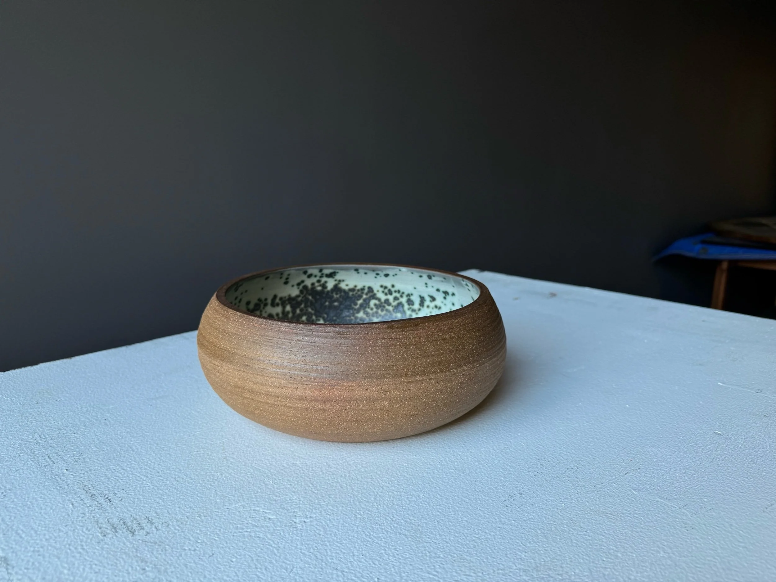 Fat lava glazed bowl by San Antonio-based ceramicist, Linda Perez. Measures 8.5” w x 4” h