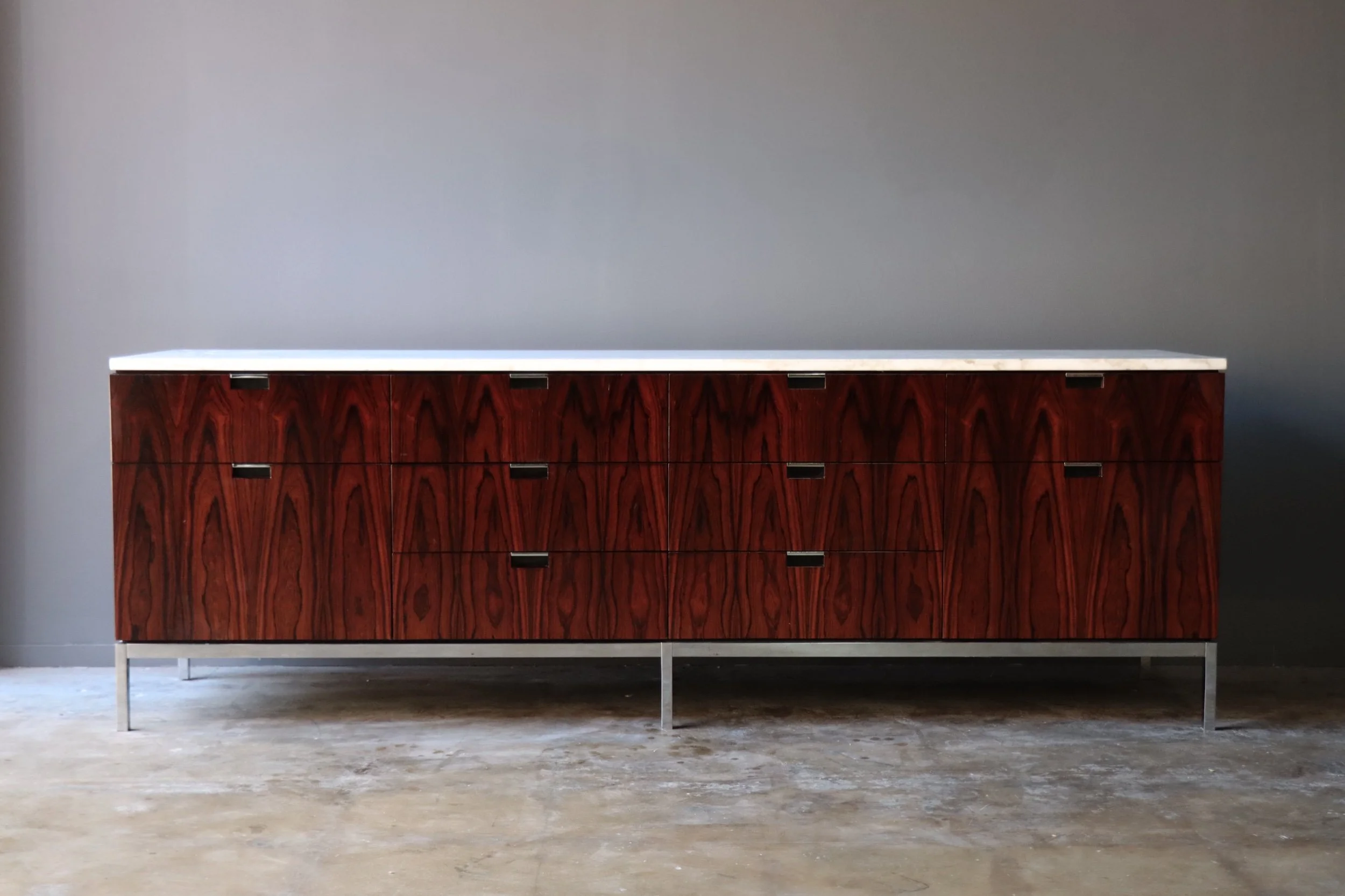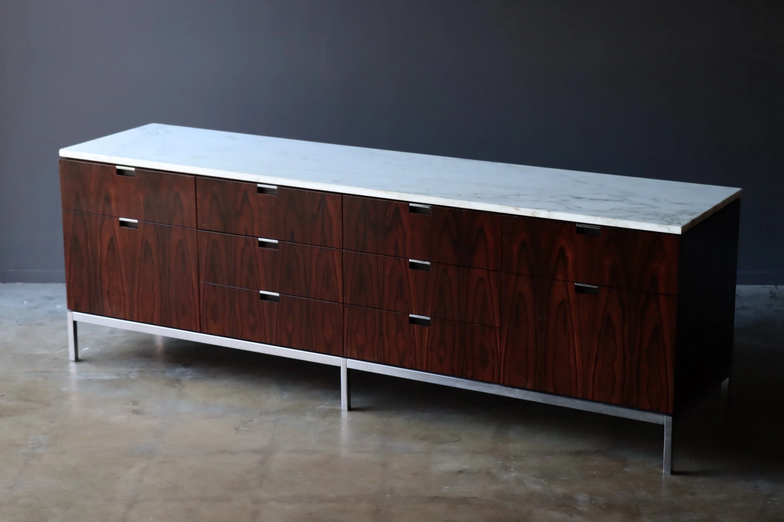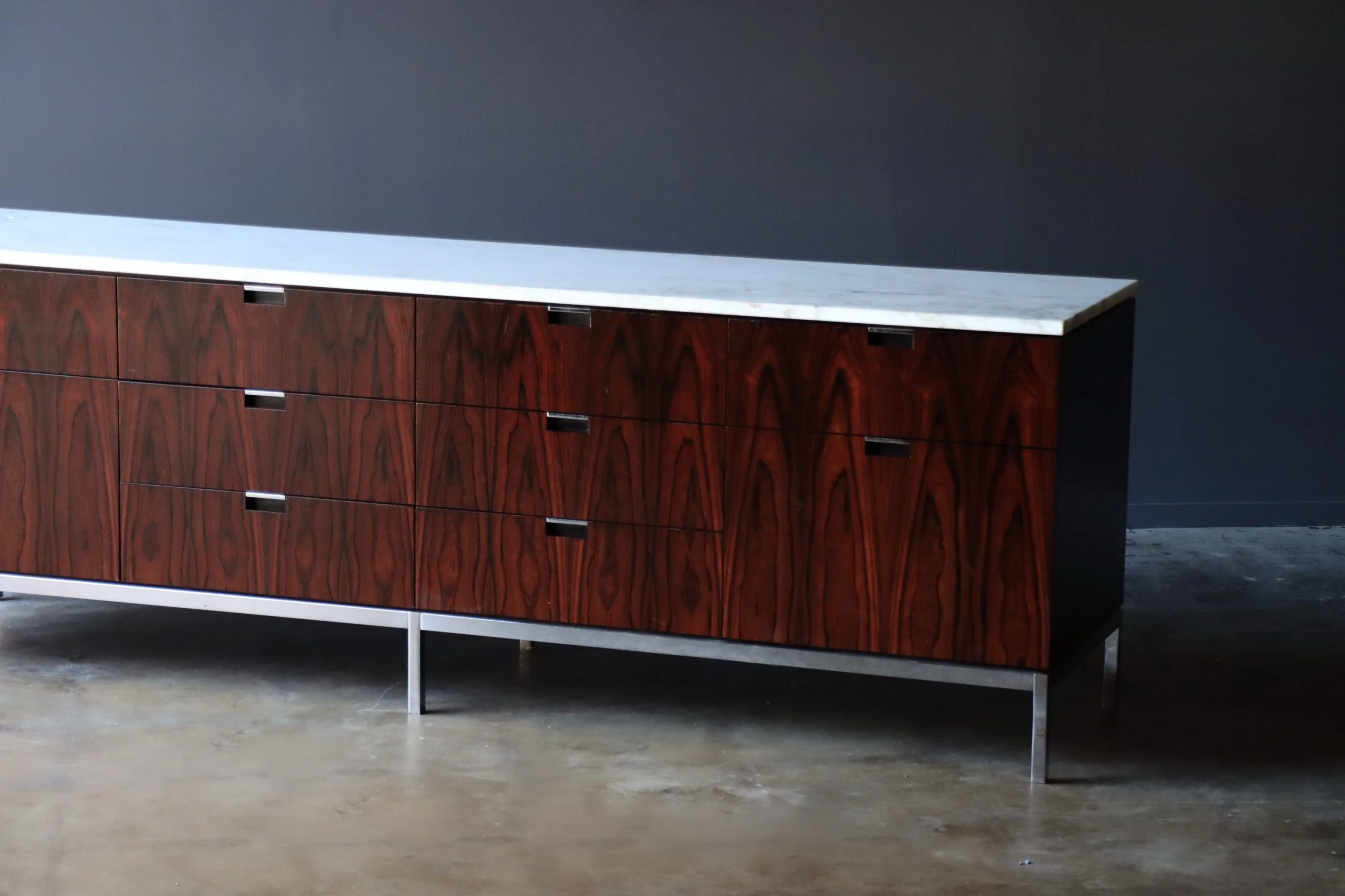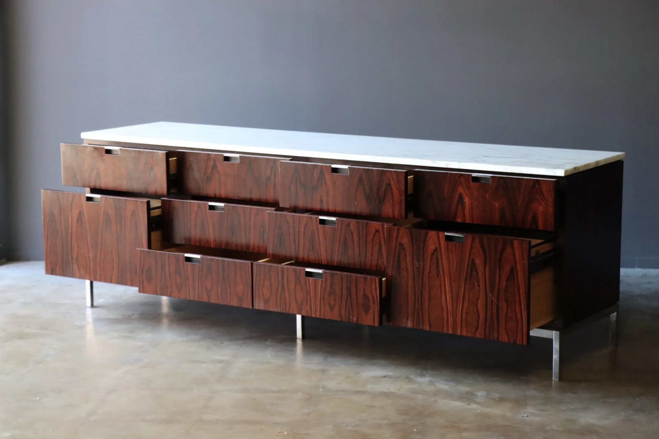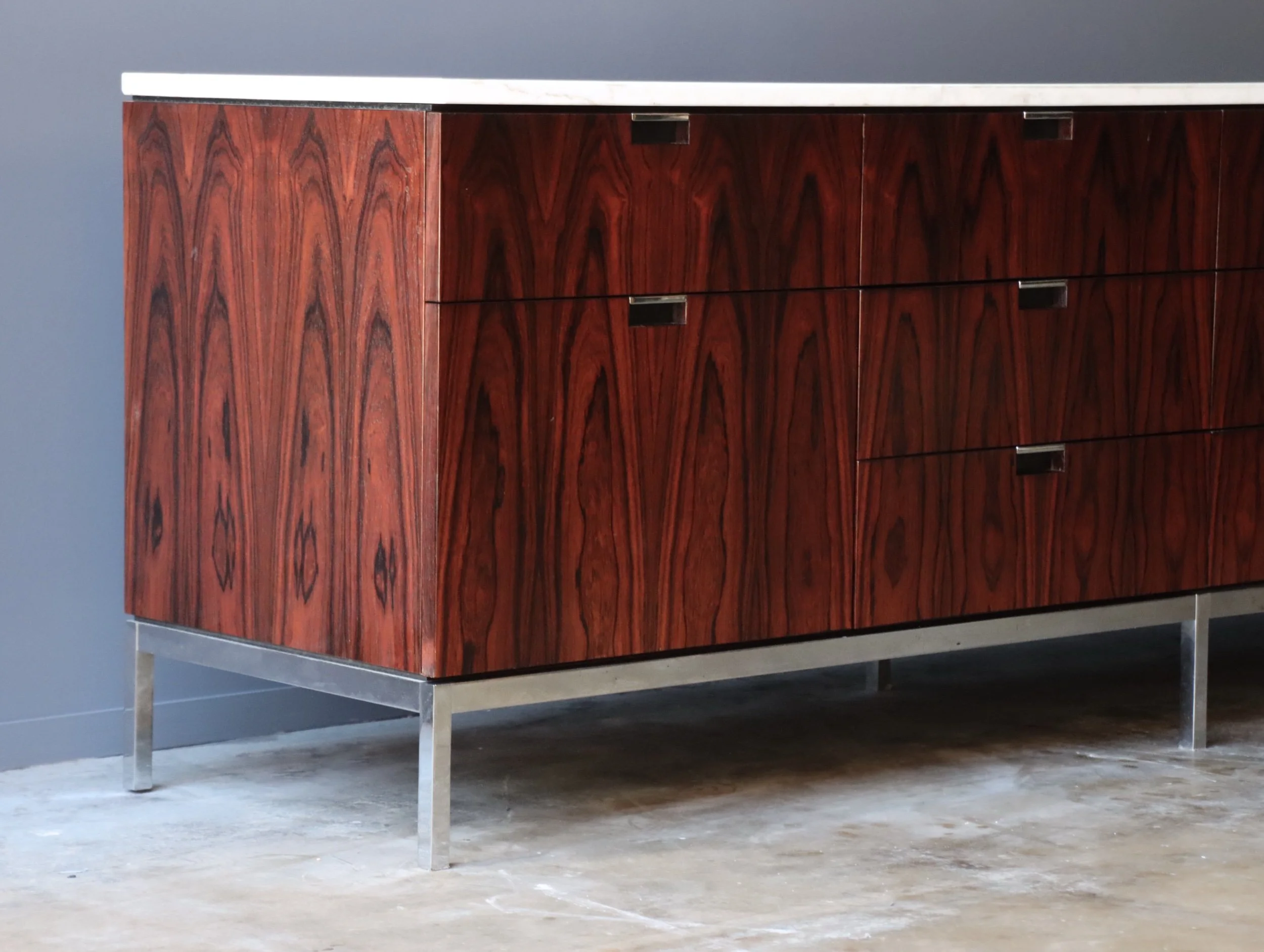 Florence Knoll Brazilian Rosewood Credenza with Carrara Marble Top