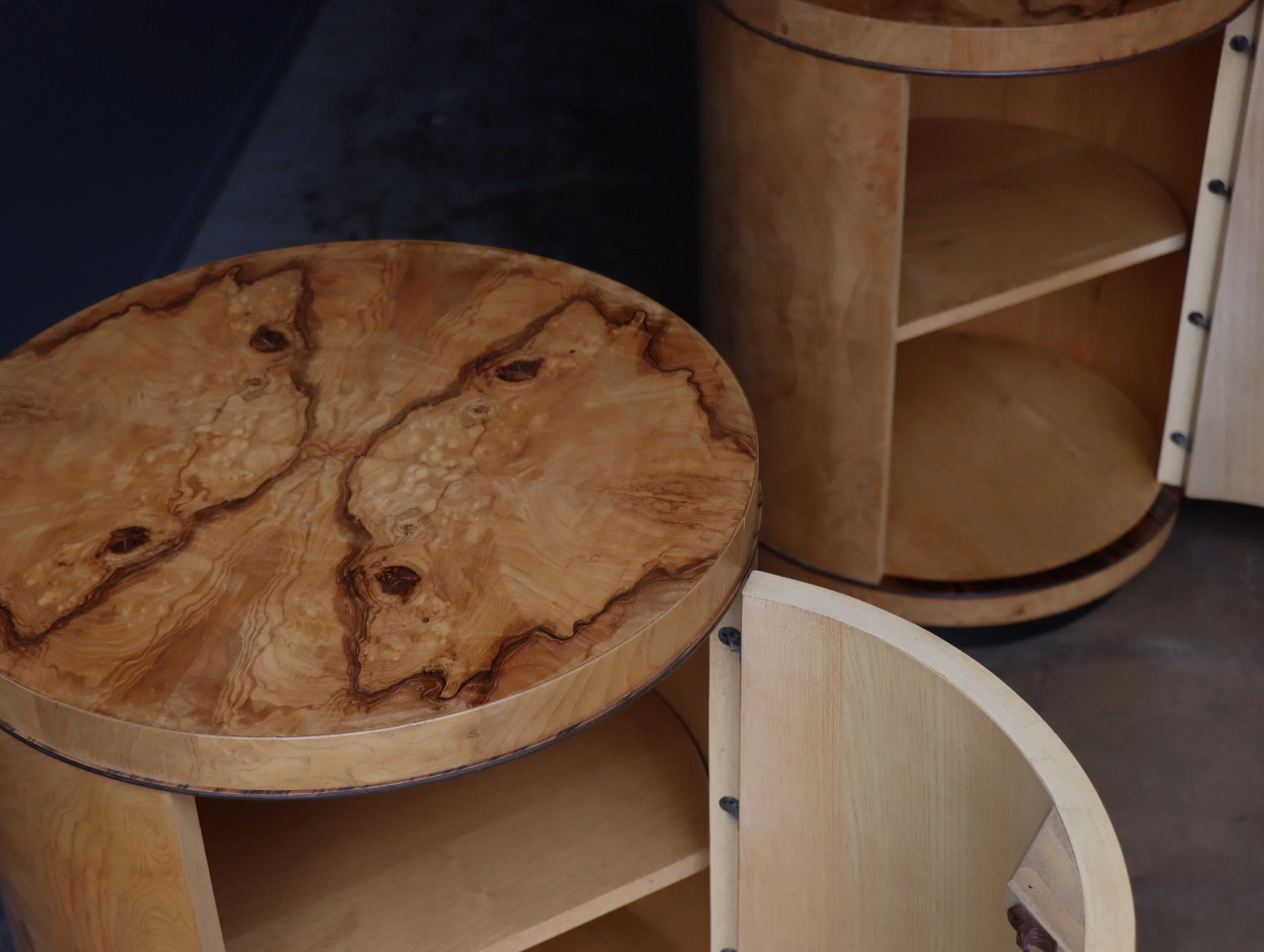 Tables Categories: Select a Category Art & Accessories Dining Lighting Seating Storage Tables Vintage Pair of Dunbar Style Burlwood Nightstands or End Tables, 1970s $3,200.00 1960s European Pine Architectural Constructivist Lounge Chairs $3,900.00 Vintage Tiered, Burl-top Coffee Table $3,200.00